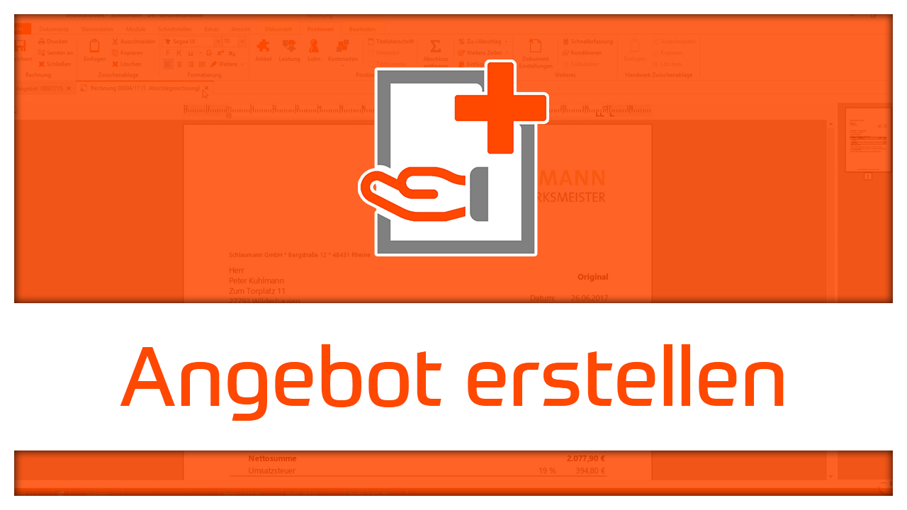 Ein Angebot erstellen und ganz einfach Artikel, Lohnarten und Leistungen einfügen.